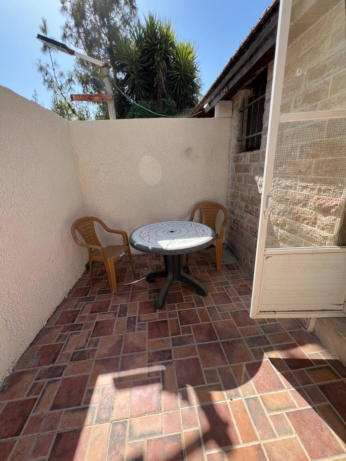 בכניסה ליחידה מחכה לכם מרפסת עץ נעימה, מוצלת, עם שולחן זוגי – המקום המושלם לקפה של בוקר או ערב רומנטי מול השקט של ההרים.